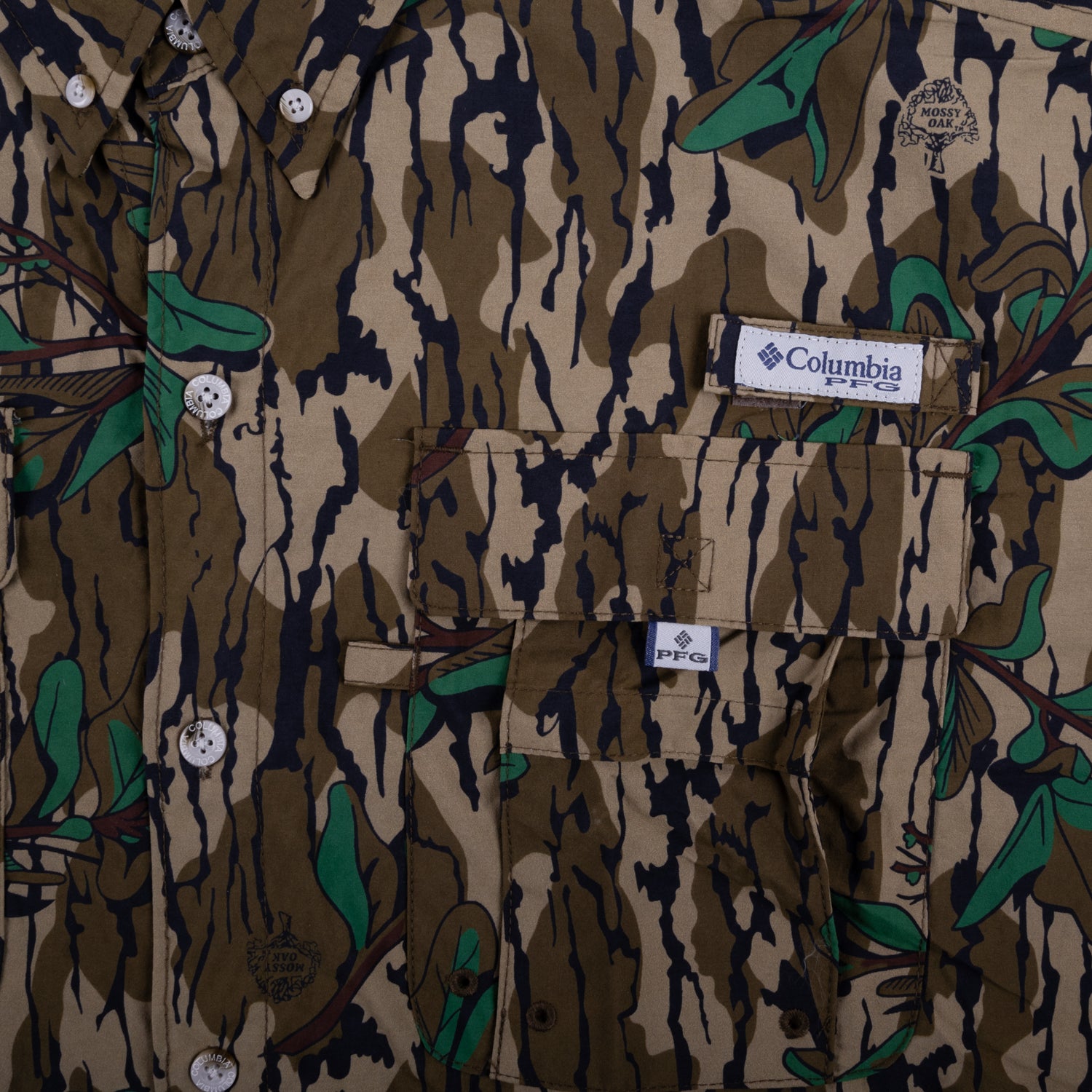 Web exclusive Luke Combs x Columbia Button Down. Mossy camo all over print.